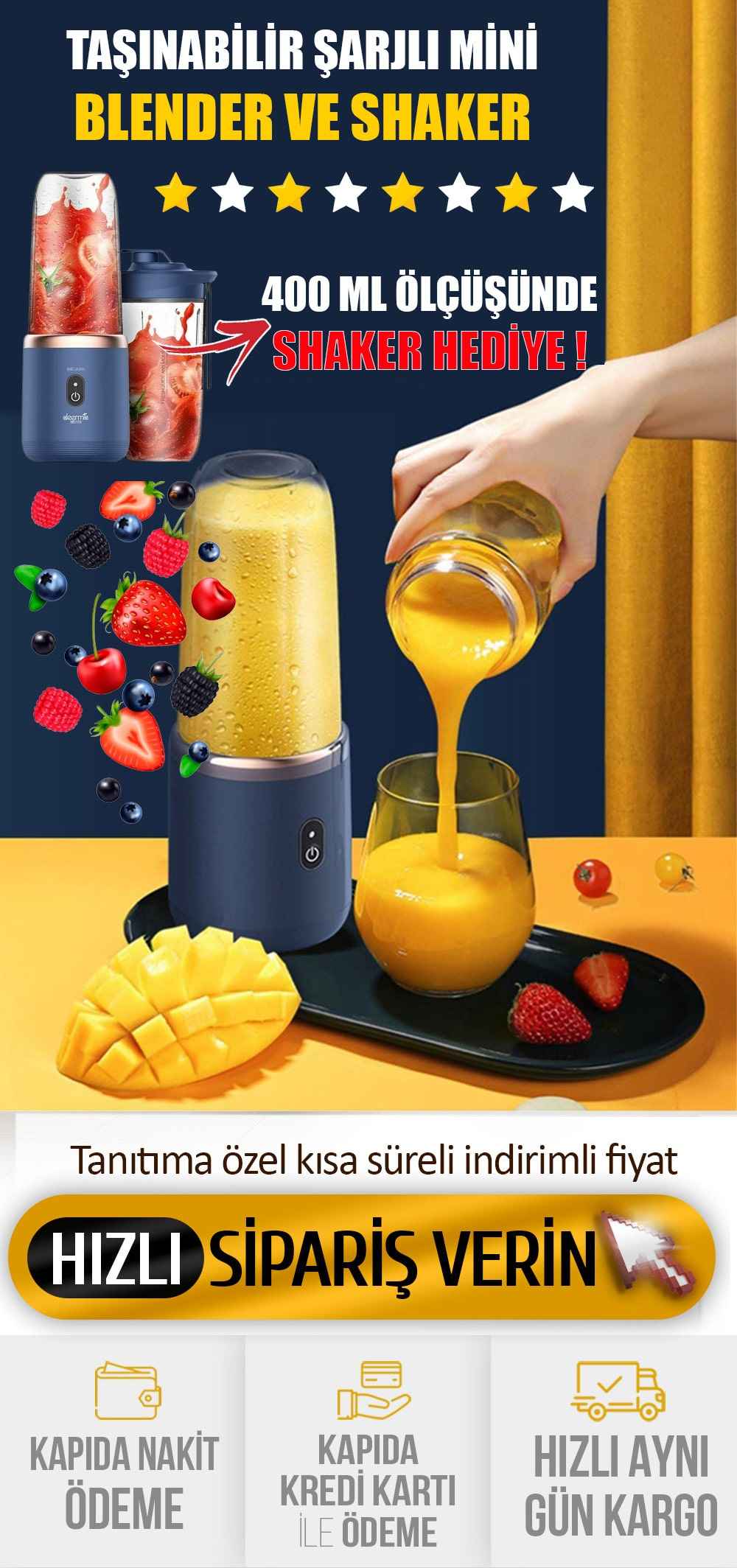 3 Adet TAŞINABİLİR BLENDER (3 ADET SHAKER HEDİYE) -
